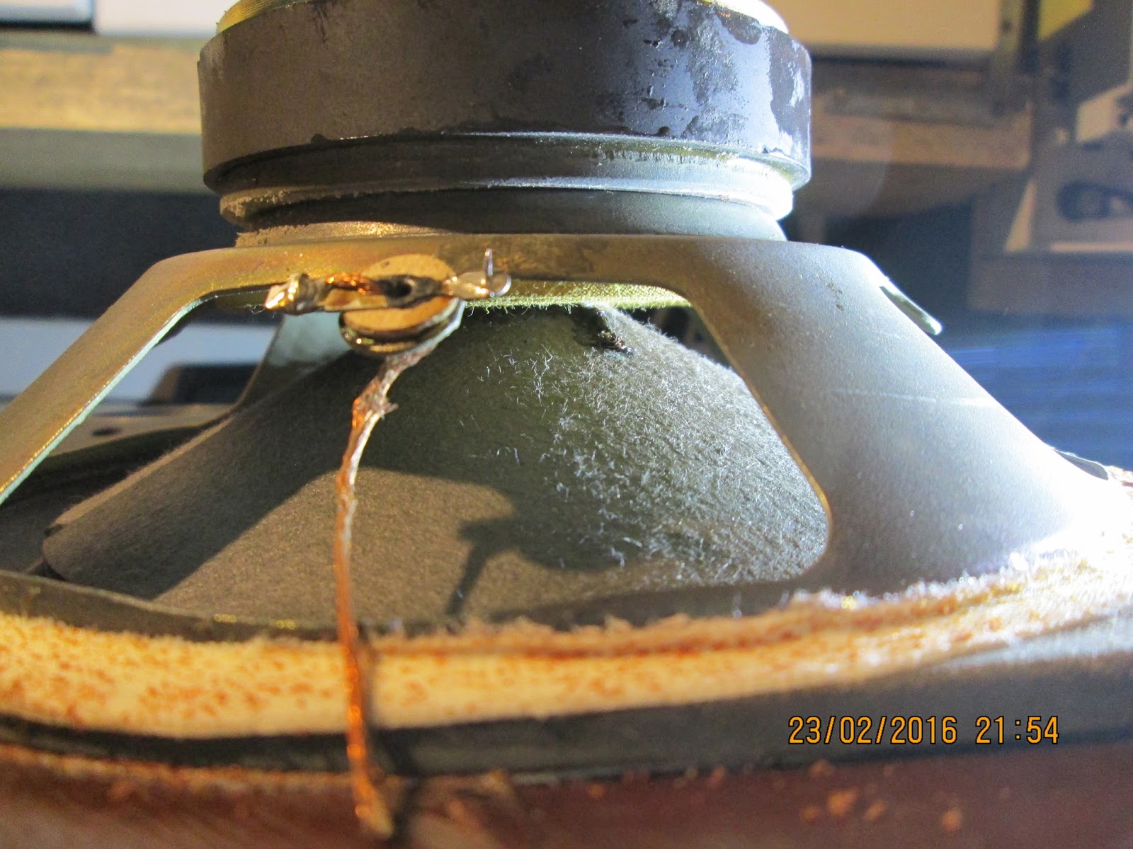 eu am taiat complet firul intrerupt , si am facut o mica intaritura cu fludor , acolo unde se termina bobina , pe suspensie. mare atentie. operatia trebuie facuta rapid , deoarece membrana principala e din hartie. si ia foc, daca stai cu letconul pe acolo mult timp. in 2 maxim 3 secunde , trebuie facuta lipitura. daca nu reuseste din prima , mai stai un pic sa se raceasca "zona" si revii chitit pe treaba.